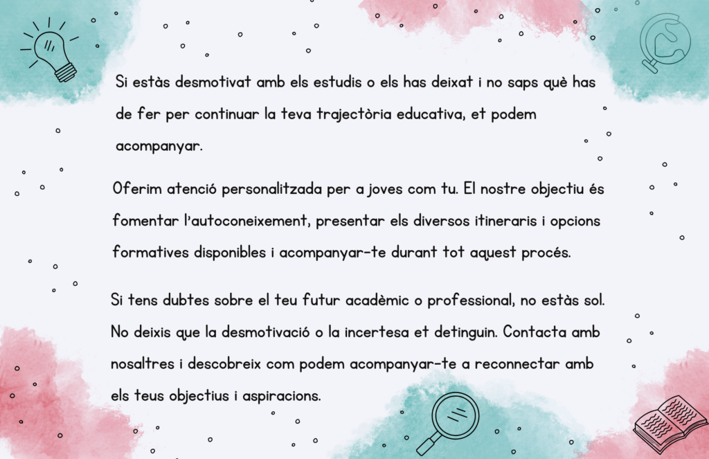 Oferir atenció i orientació educativa als joves de 16 a 24 anys que estiguin fora del sistema educatiu.