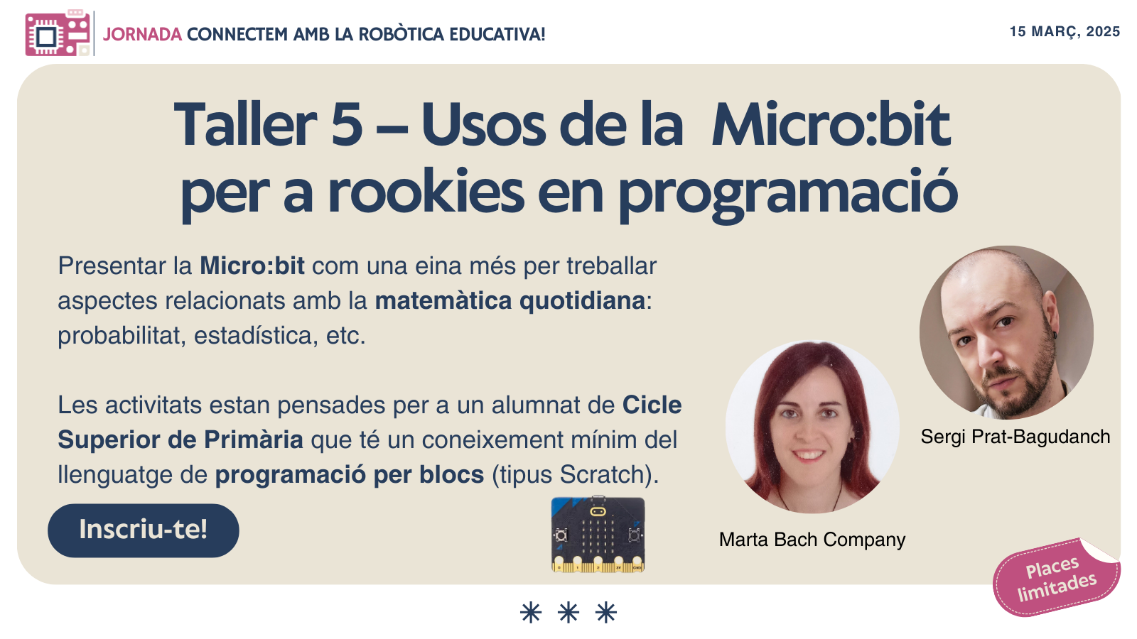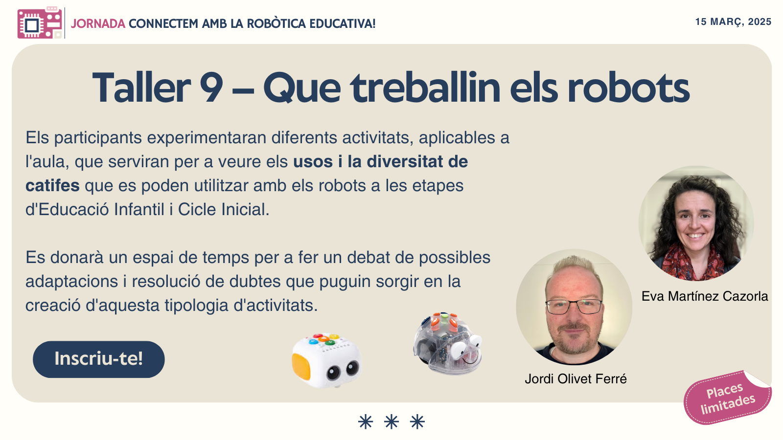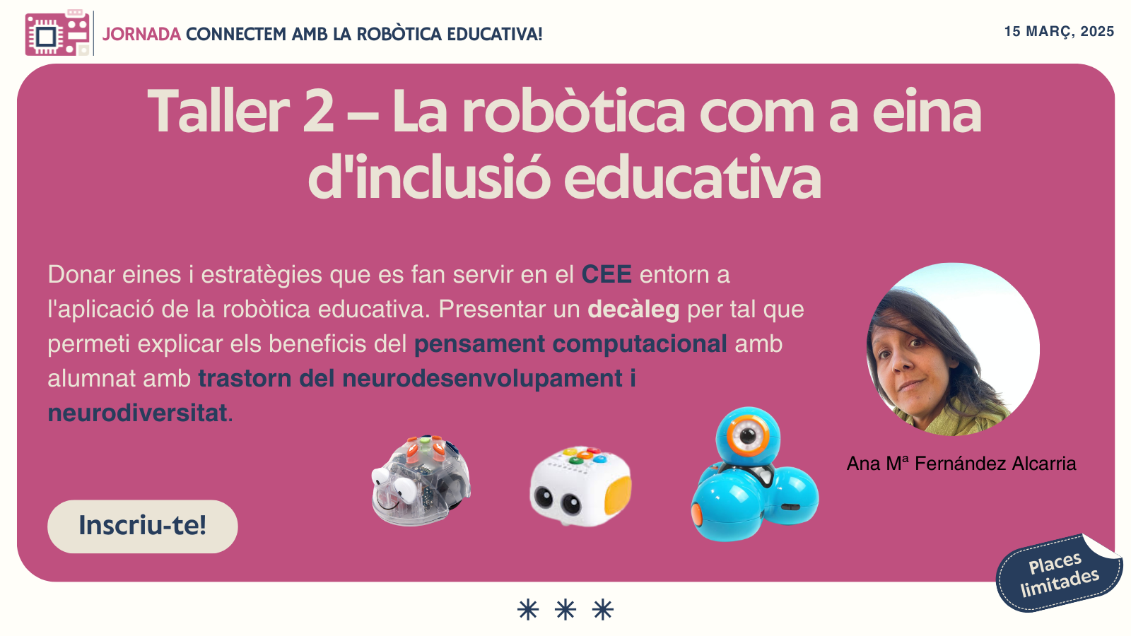 Conferència i tallers pràctics per introduir el pensament computacional, la robòtica i la programació a l’aula (tallers de Blue Bot, Tale Bot, Codey Rocky, Dash, Lego, Micro:bit, ESP32…)