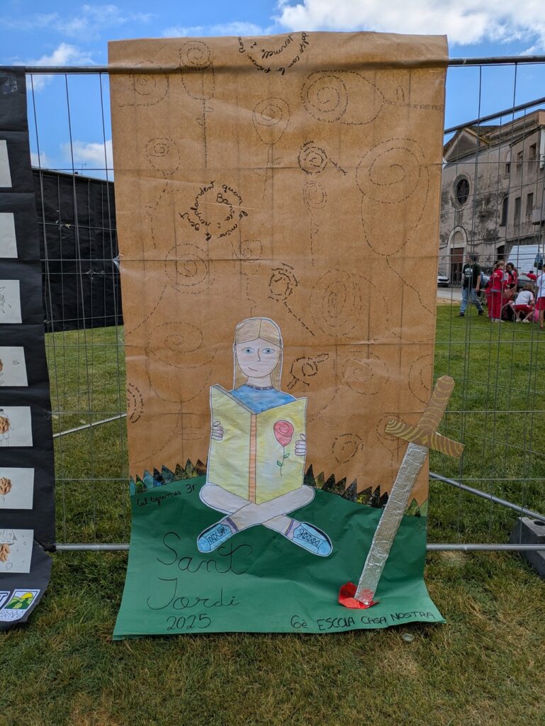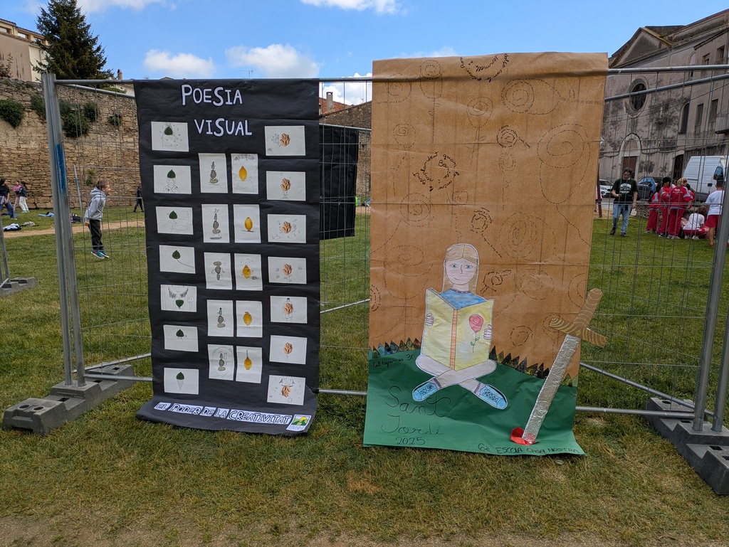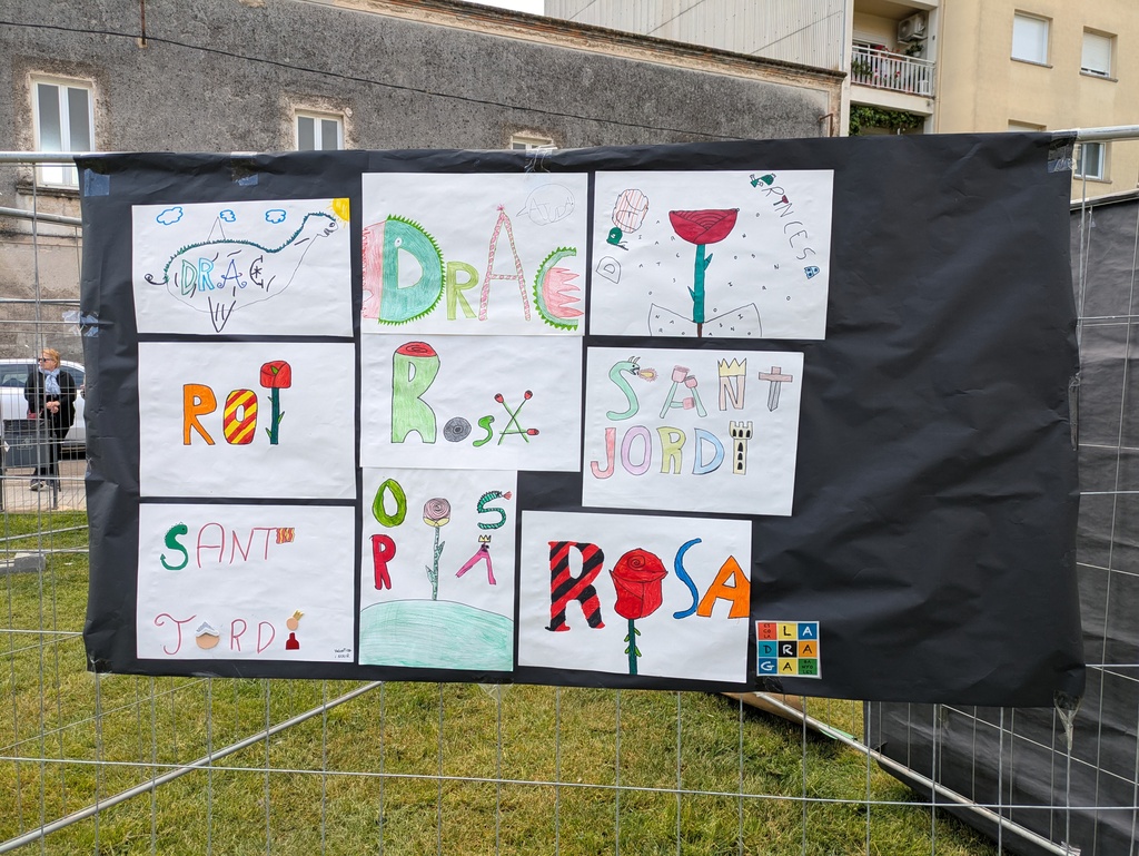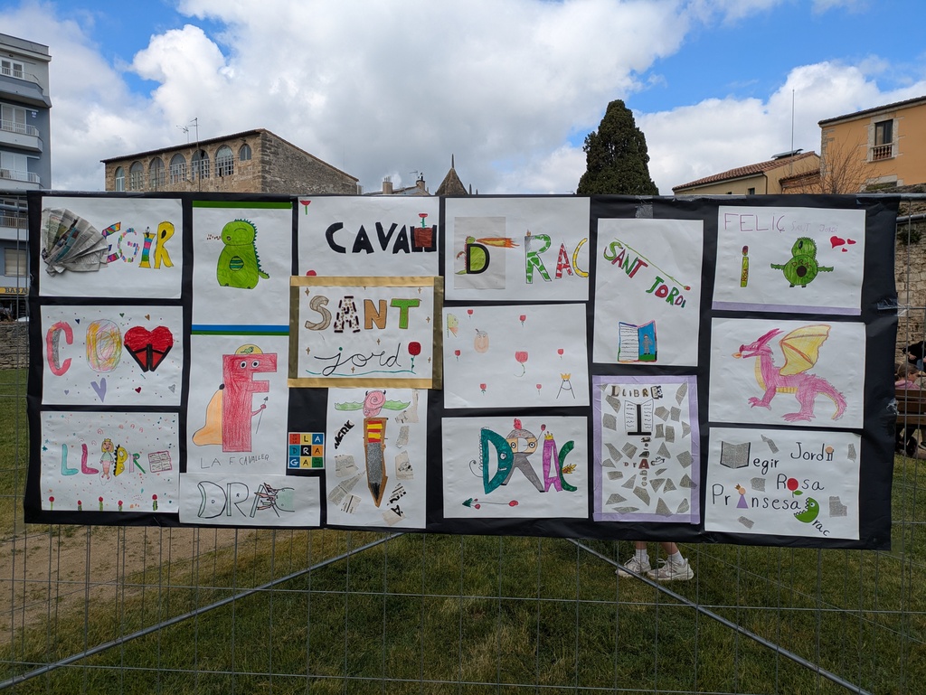 El centre hi plasma el que vol: poden ser poemes, dibuixos, treballs… relacionats amb Sant Jordi.