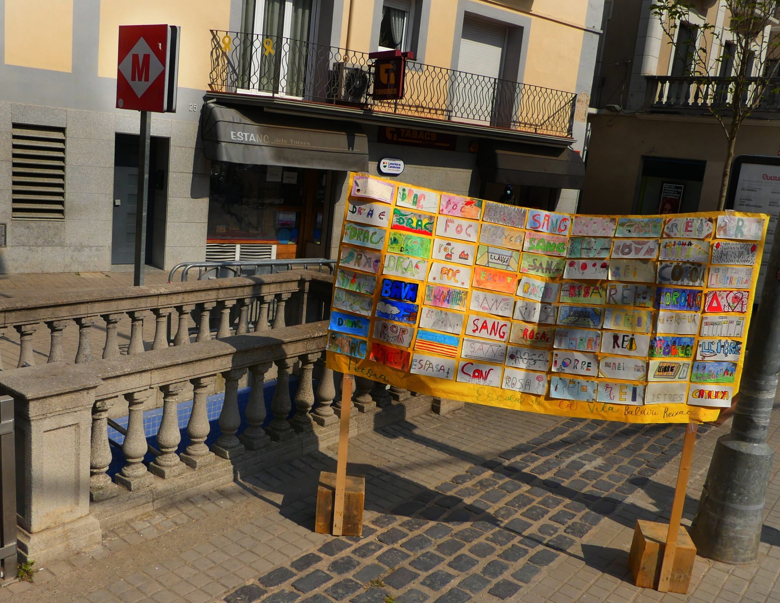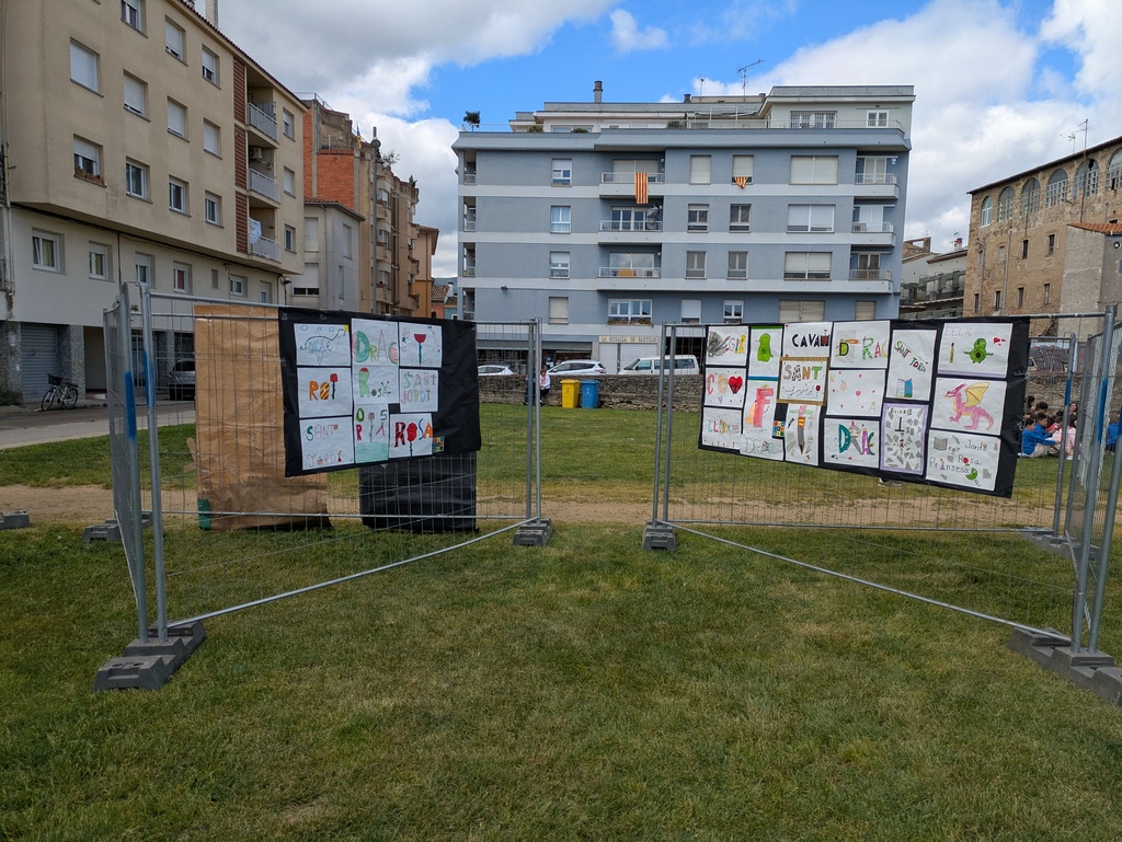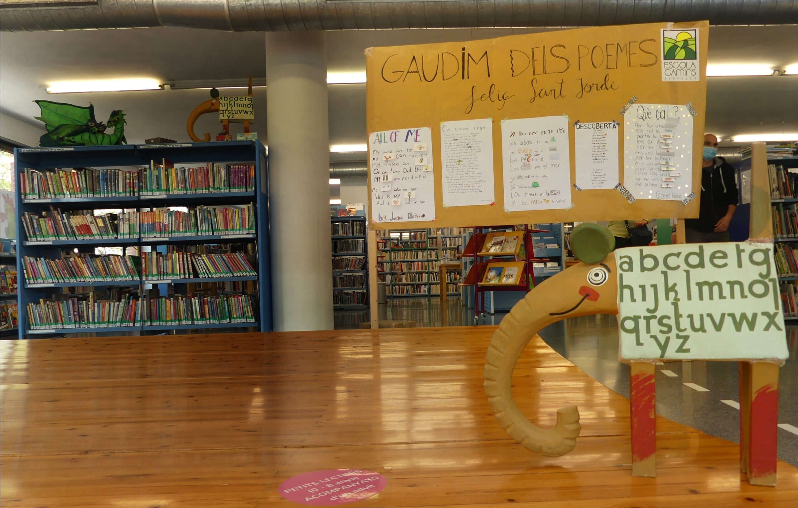 El centre hi plasma el que vol: poden ser poemes, dibuixos, treballs… relacionats amb Sant Jordi.