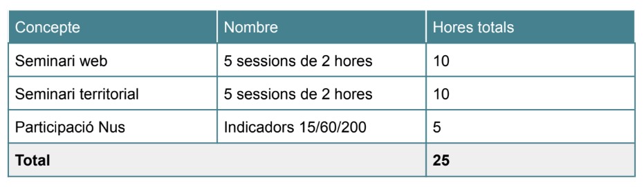 Se certificaran 25 hores, que corresponen a: