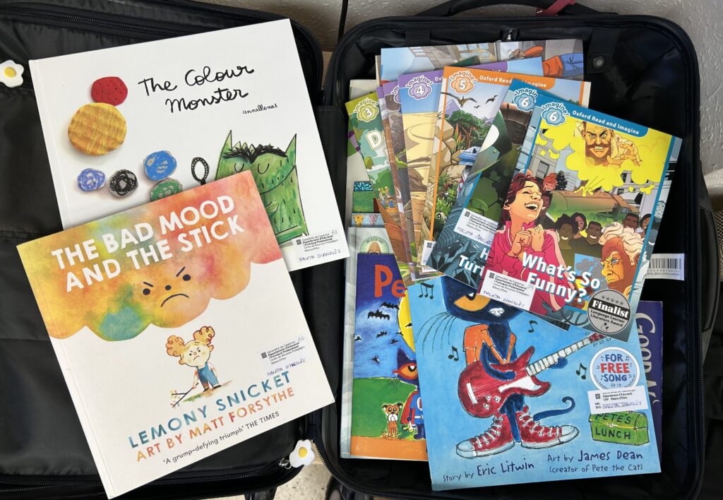 Aquest curs 25-26 hem actualitzat el contingut de la nostra Maleta d’Anglès Primària  seguint les recomanacions del grup de mestres del Seminari Especialistes d’Anglès. Hem retirat materials obsolets i hem incorporat nous exemplars. Destaquem: Contes de treball de les emocions en anglès, les festes tradicionals i els aliments. Exemplars de diferents nivells de la col·lecció