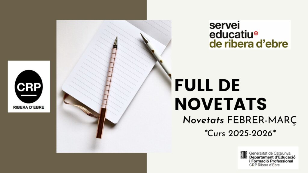 FULL DE NOVETATS del SE de la Ribera d’Ebre corresponent als mesos febrer-març 2026 (cliqueu aquest enllaç per accedir-hi). De tots els recursos que hem anat publicant durant els dos últims mesos inclosos en aquest recull, destaquem: Recursos – Maletes CRP Maleta d’anglès, actualitzada. Hem fet seguit recomanacions del grup docent GT Especialistes d’Anglès. Retirats materials obsolets i incorporats nous […]