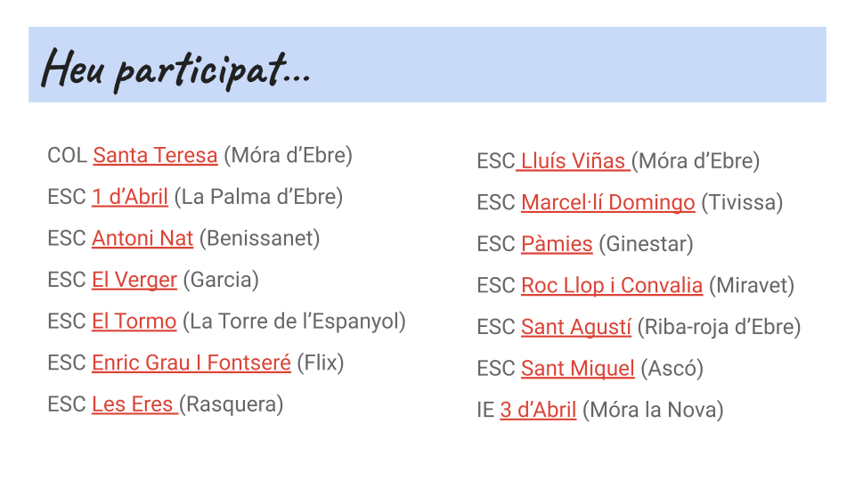Programa Higiene de Mans 2025. Participació dels centres educatius de la Ribera d’Ebre: