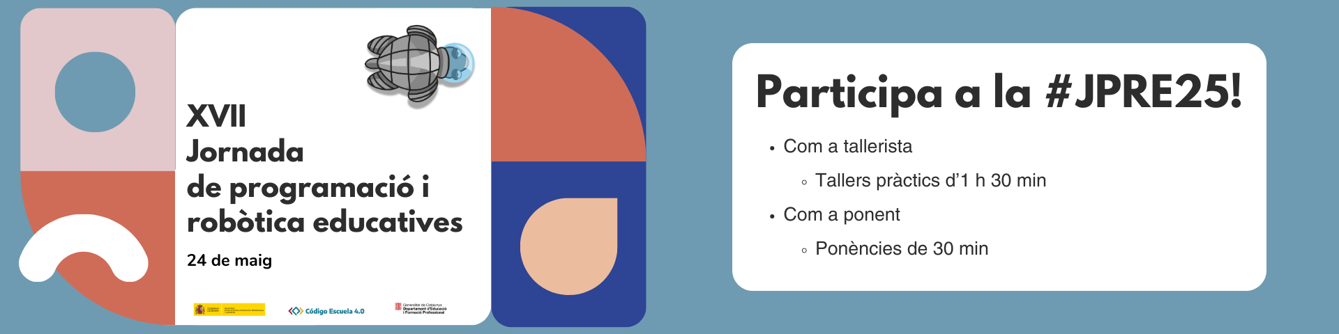 L‘Àrea de Cultura Digital ja té organitzada la XVII Jornada de Programació i Robòtica educatives (JPRE) on es presenten diferents activitats (tallers, ponències, entre d’altres) de programació i robòtica per a les persones participants.