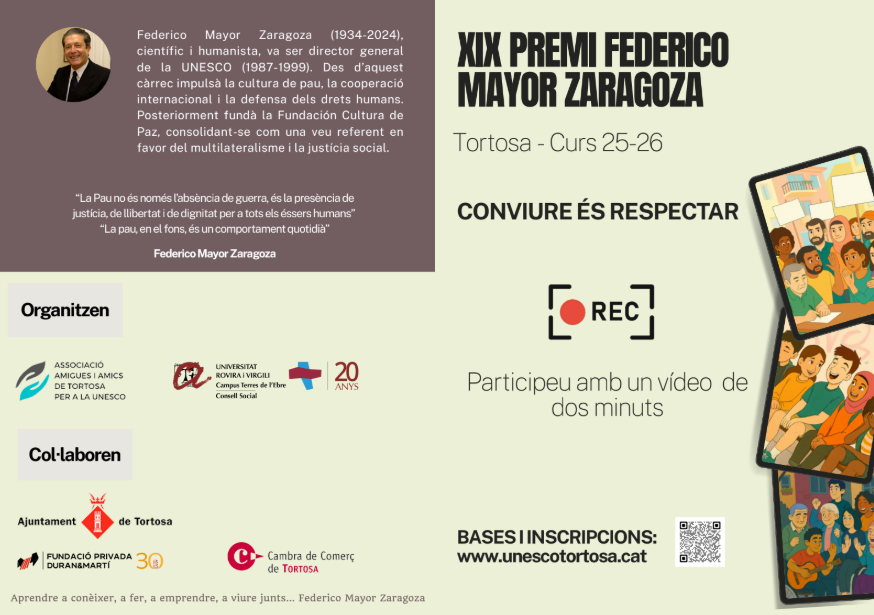 Convocat el XIX Premi Federico Mayor Zaragoza, curs 2025-2026.