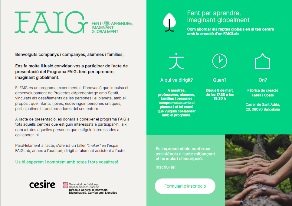 El Programa FAIG és una oportunitat per crear entorns d’aprenentatge amb sentit, on posar l’alumnat al centre, sentint la seva