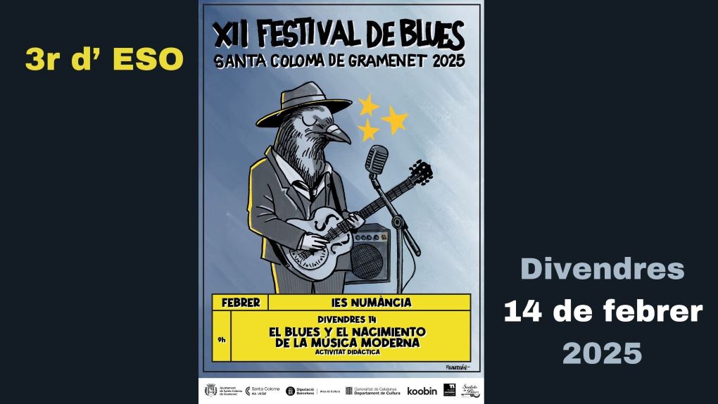 El passat divendres 14 de febrer, l’Institut Numància va tenir el privilegi d’iniciar els actes del XII Festival de Blues de la nostra ciutat amb una activitat adreçada als alumnes de 3r d’ESO.