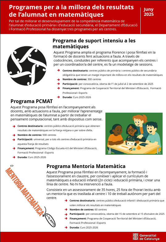 Programes per a la millora dels resultats de l’alumnat en matemàtiquesPer Josep Iu Cortès / 07/07/2025 / CRP General Matemàtiques Portada Robòtica