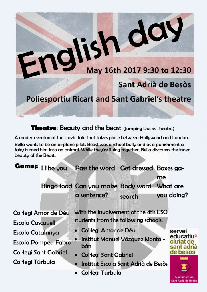 L’English Day és una activitat que porta duent-se a terme des del curs 2009-2010 com un element cohesionador a través del joc i dels productes d’oci. L’activitat està dividida en dues parts ben diferenciades: una gimcana amb jocs per l’aprenentatge de l’anglès i una obra de teatre en anglès.