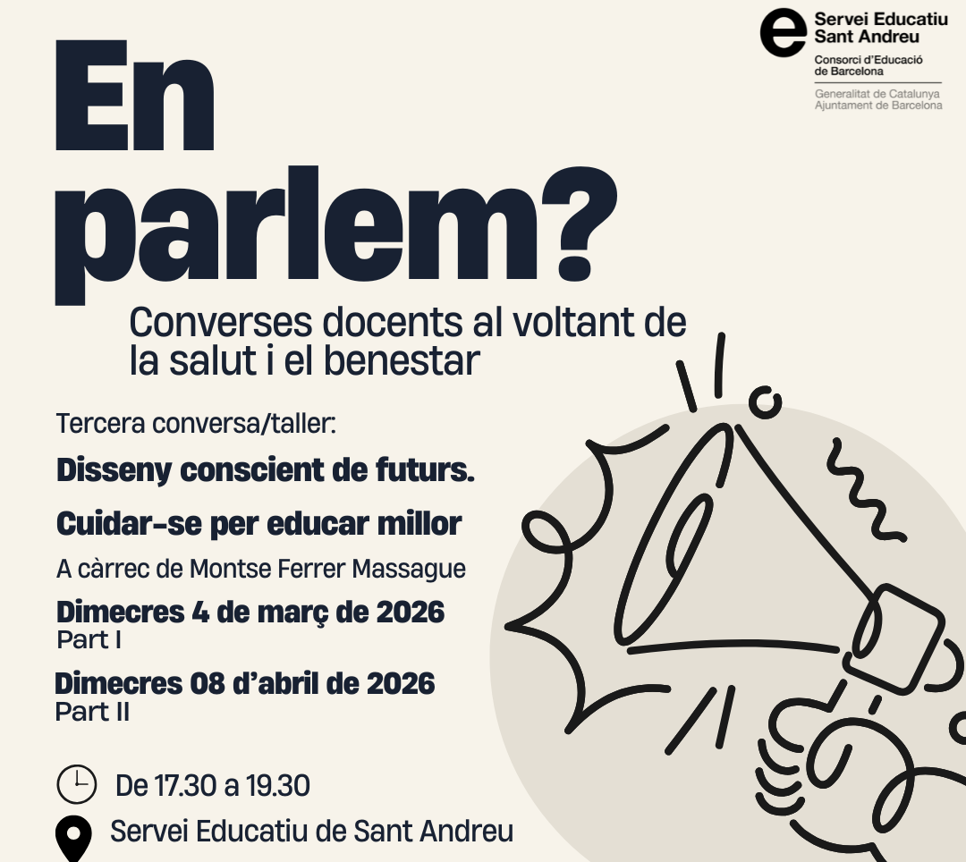 EN PARLEM? és un espai de conversa docent de cura i benestar en format de taller pràctic de dues sessions sobre aspectes relacionats amb alguns dels vectors del nou currículum.
