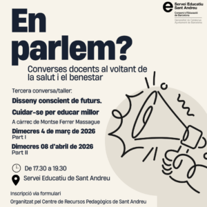 EN PARLEM? és un espai de conversa docent de cura i benestar en format de taller pràctic de dues sessions sobre aspectes relacionats amb alguns dels vectors del nou currículum.