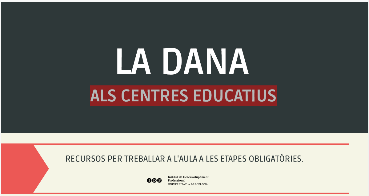 Des de la secció d’Infantil, primà ria, secundà ria, FP i formació al llarg de la vida del IDP de la Universitat de Barcelona han creat un recull de recursos per facilitar el treball en temes  relacionats amb la DANA (Depressió Aïllada en Nivells Alts). Aquest recull inclou materials, guies i altres eines útils que esperem que siguin del vostre interès per treballar a l’aula.