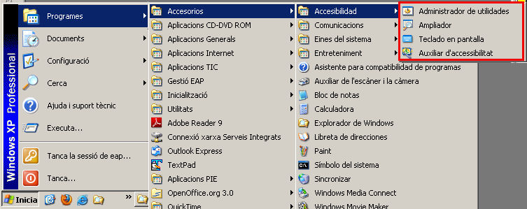 <també en els programes informàtics ordinaris trobarem recursos que facilitaran l’accessibilitat, la personalització de les interfícies i ajudes per a casos d’alumnes que ho necessitin>