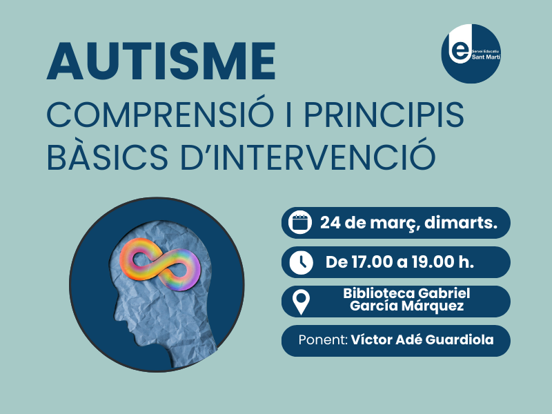 La xerrada “Autisme: Comprensió i principis bàsics d’intervenció” canvia d’ubicació. Es farà a la Biblioteca Gabriel García Márquez.