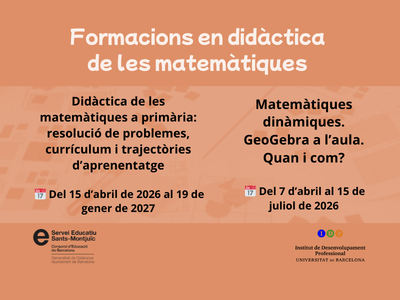 Les matemàtiques tenen un paper destacat en l’oferta formativa de l’IDP-UB amb propostes centrades en la millora de la pràctica docent. Destaquen dues formacions: una sobre didàctica a primària basada en la resolució de problemes i el currículum, i una altra sobre l’ús de GeoGebra a l’aula de secundària. Amb un enfocament pràctic i competencial, aquests cursos ofereixen eines útils i aplicables per potenciar l’aprenentatge matemàtic de l’alumnat.