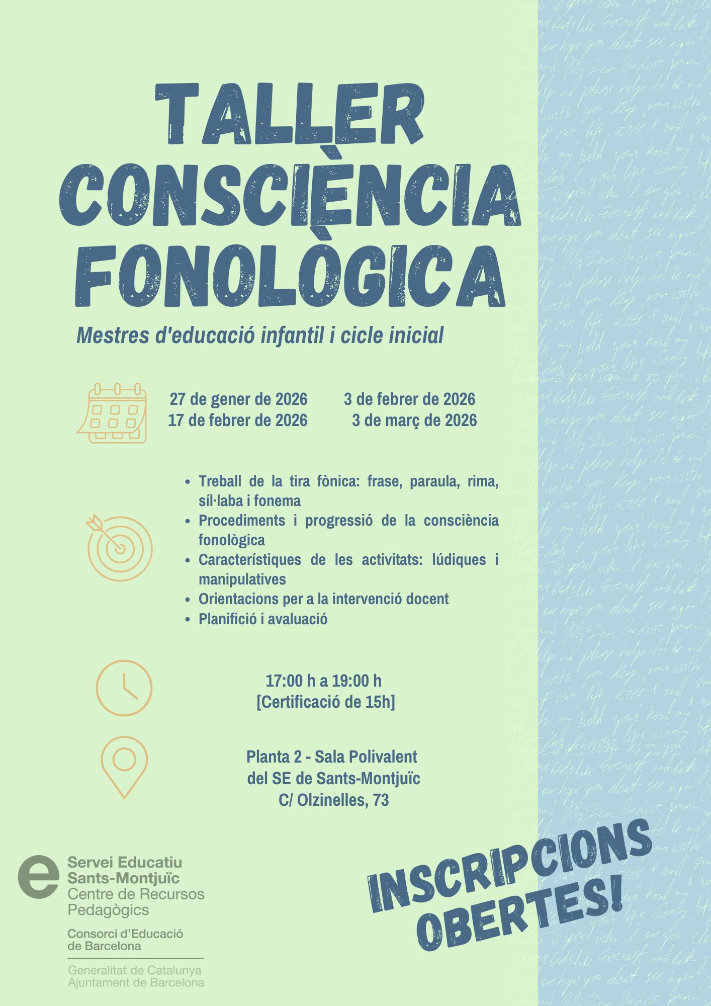 Inscripció oberta – Taller de Consciència Fonològica (codi 1030231103)