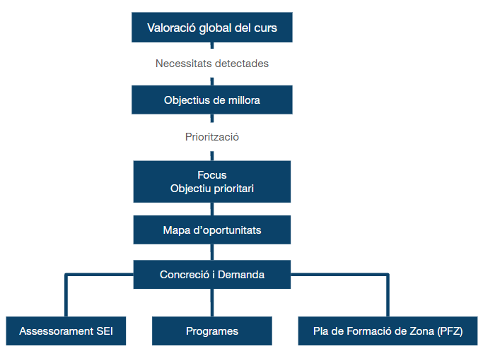 Totes les actuacions han d’estar alineades amb les línies estratègiques del sistema educatiu, però sobretot, amb aspectes concrets del projecte educatiu de centre i han d’estar enfocades a objectius de millora i/o canvis de les pràctiques docents o en l’organització i funcionament del centre; aspectes que han de revertir en una millora en els aprenentatges de l’alumnat.