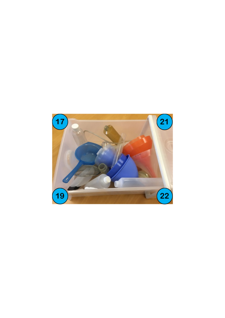 Descripció Recurs consistent en 4 caixes que contenen embuts, pots de plàstic, canyes, coladors, bomba d’aigua i tubs de plàstic. Aquest recurs pertany a la proposta del CESIRE : Projecte Descoberta 3/6 Consulteu la proposta didàctica completa del Projecte Descoberta 3/6 Disponibilitat caixa per treballar l’aigua (2) (Reg. 60543) Disponible