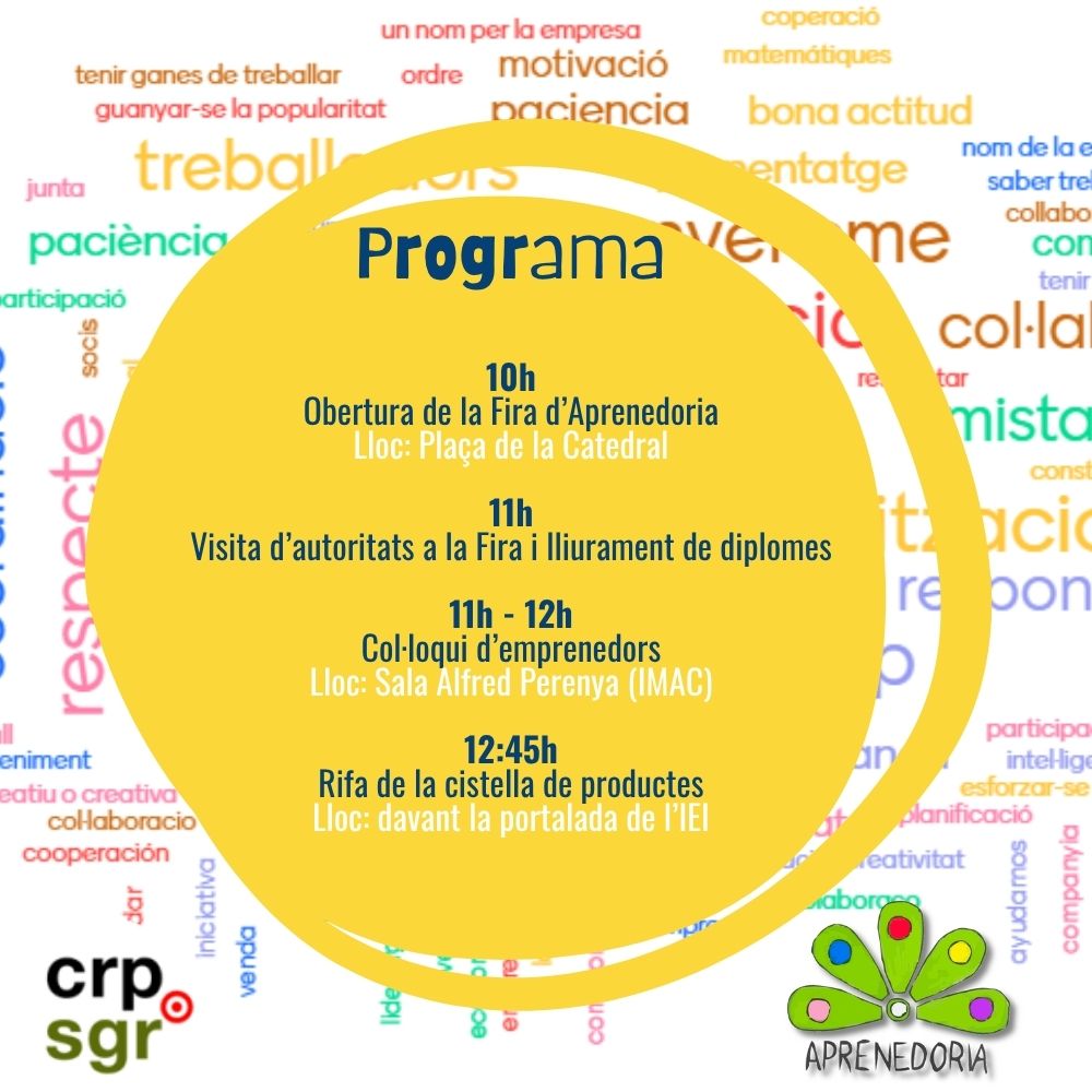 I, a les 11h, a la Sala Alfred Perenya, de l’IMAC, farem el col·loqui d’emprenedors de les escoles que hi participen: