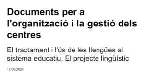En el dossier El tractament i l’ús de les llengües al sistema educatiu. El projecte lingüístic hi ha un apartat dedicat a les biblioteques escolars, on es defineixen les seves funcions i aspectes organitzatiu