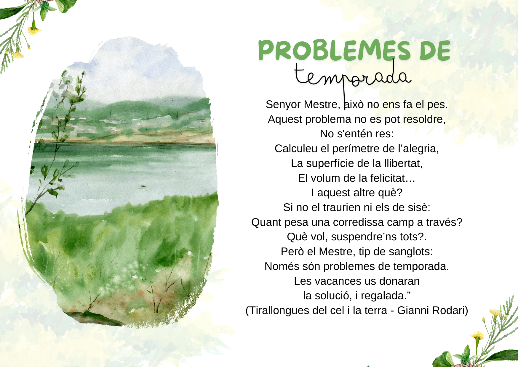 Enguany us portem un poema i un conte, que ben segur que us agradaran.