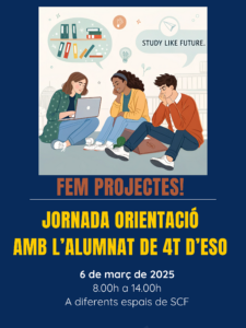 Aquest dijous 6 de març en sessió matinal fem la Jornada d’Orientació adreçada a l’alumnat de 4t ESO, a diferents espais a Santa Coloma de Farners.
