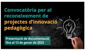 El termini de presentació de la sol·licitud i de la memòria del projecte d’innovació pedagògica finalitza el 13 de gener de 2023.