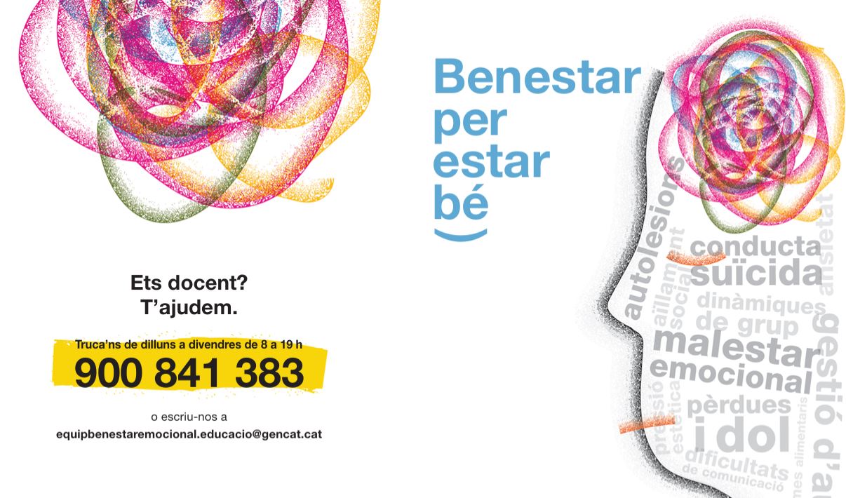 Recursos. Amb motiu del Dia Mundial de la Salut Mental, el passat 10 d’octubre, us recordem alguns dels recursos disponibles per donar suport a l’alumnat. “Benestar per estar bé” (BxB) és un programa que acompanya els i les professionals de l’educació per dotar-los d’eines per promoure i millorar el benestar emocional de l’alumnat. En formen part professionals de la psicologia i de la pedagogia que proporcionen suport a través de la intervenció telefònica, les formacions, l’acompanyament en la gestió emocional dels centres, l’organització de dinàmiques de treball, i les propostes de recursos i material didàctic. També han creat vídeos formatius per a diverses situacions que trobareu al canal de YouTube del Departament.