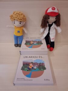 UN ARXIU ÉS és el seu nom! Es tracta d’un conte novedós ja que mai s’havia publicat en una editorial un conte infantil que expliqués la professió dels arxivers i arxiveres als infants. Un conte humil però escrit amb tot l’amor del món. El d’una mare que volia explicar als seus fills a què es dedicava. És així com va començar l’aventura per escriure’l, trobar una companya que en fes les il·lustracions, buscar una editorial que ens el publiqués, capgirar cel i terra per tirar endavant la campanya de mecenatge que impulsàvem amb l’editorial, publicar-lo i començar-lo a introduir a les escoles, a fires de llibre, a la ràdio i a tot arreu on hi hagi la opció de parlar-ne.
