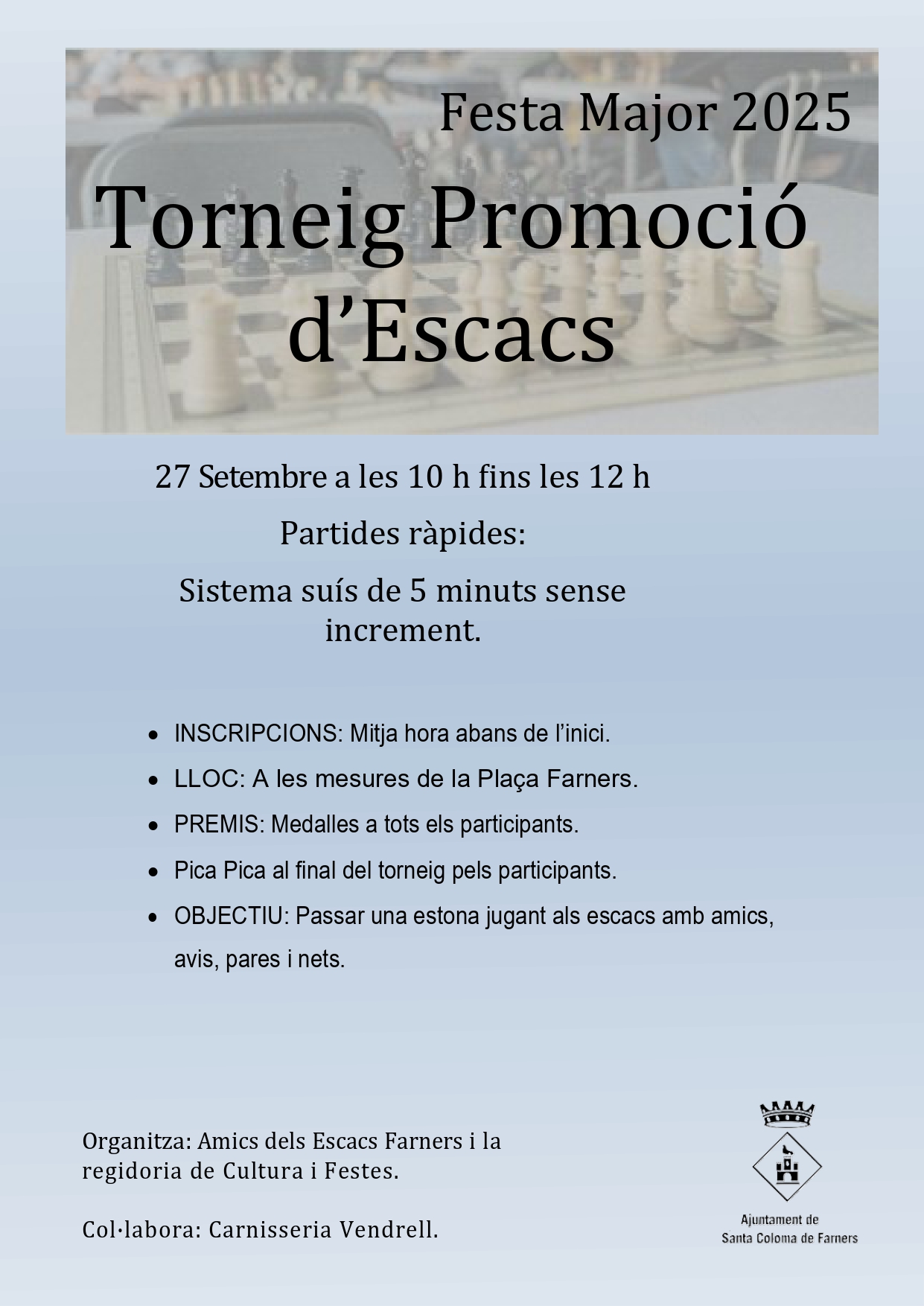 Torneig promoció d’Escacs dins el marc de la Festa Major de SCF 25 Feu un comentari / Per admin / 08/09/2025 / Portada