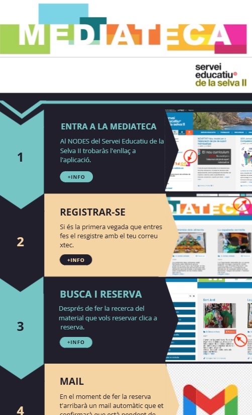 Reserva de dia i hora per venir a la sala "Mediateca" , on hi tenim instal·lada Ràdio Selva II, per enregistrar qualsevol programa de ràdio per part de l'alumnat i professorat dels centres educatius de la nostra zona.