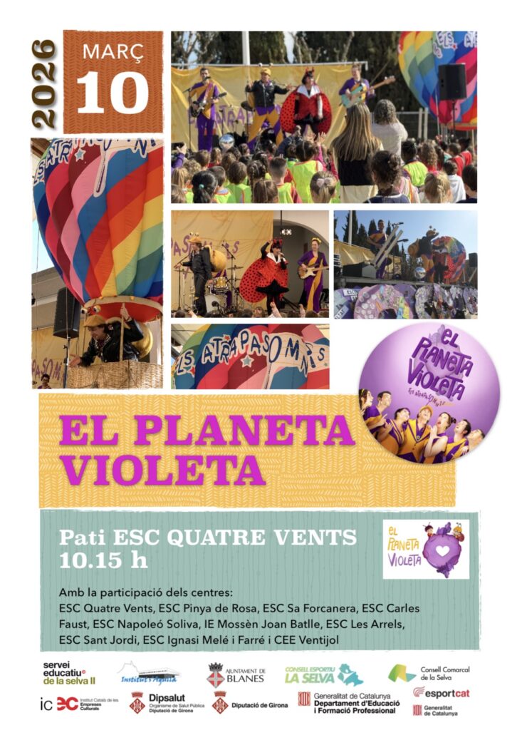 Des del Servei Educatiu de la Selva II volem agrair la implicació de tots els centres, docents i tots els agents que han fet possible aquesta iniciativa. El Planeta Violeta continua bategant gràcies al compromís de les nostres escoles amb la sostenibilitat i el futur.