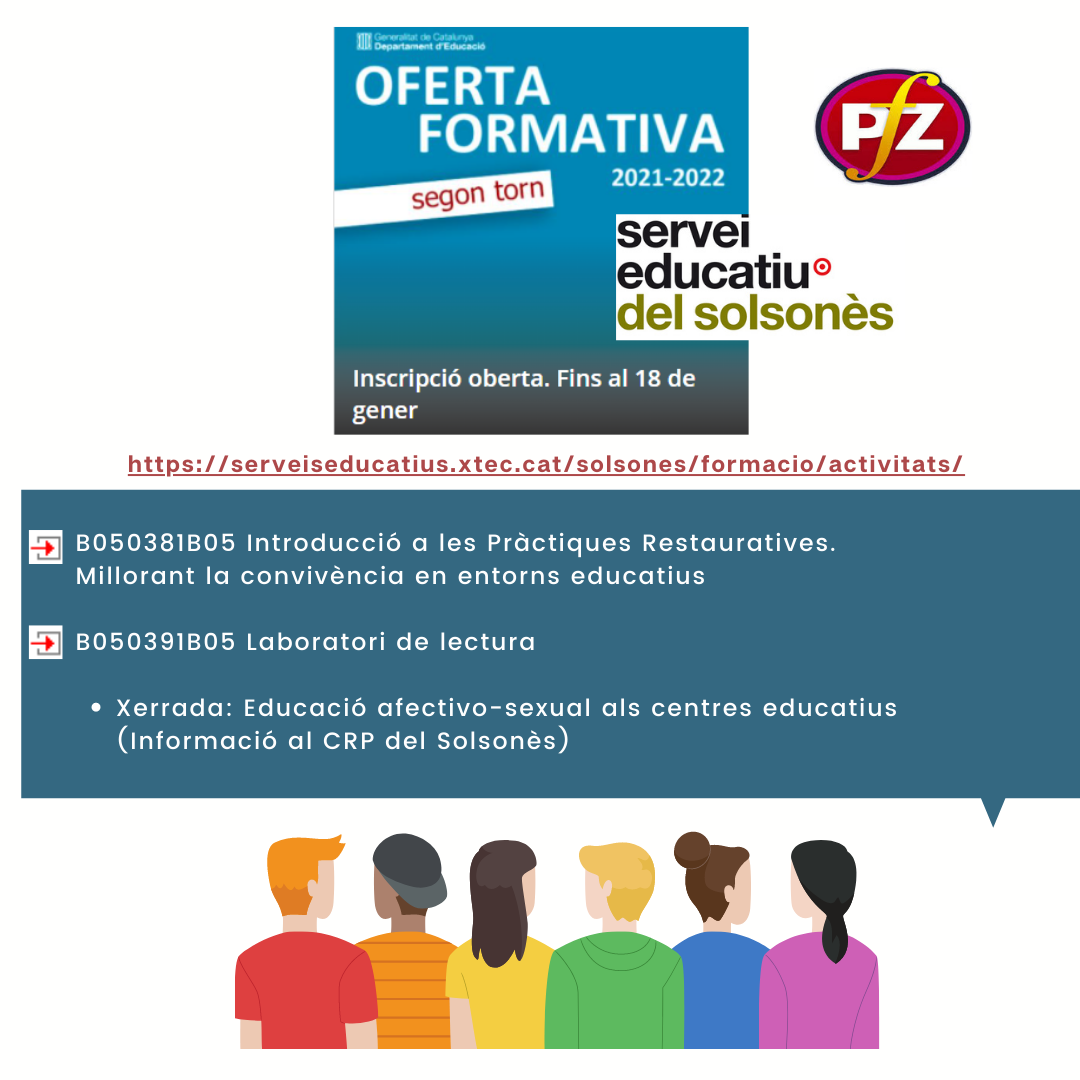 A partir del dia 7 de gener s’ha obert la inscripció al segon torn del Pla de Formació de Zona. Podeu consultar la informació a l’XTEC i a la nostra web. Aquí teniu més informació i l’enllaç per fer les inscripcions en aquestes propostes.