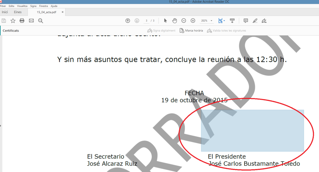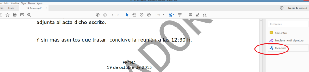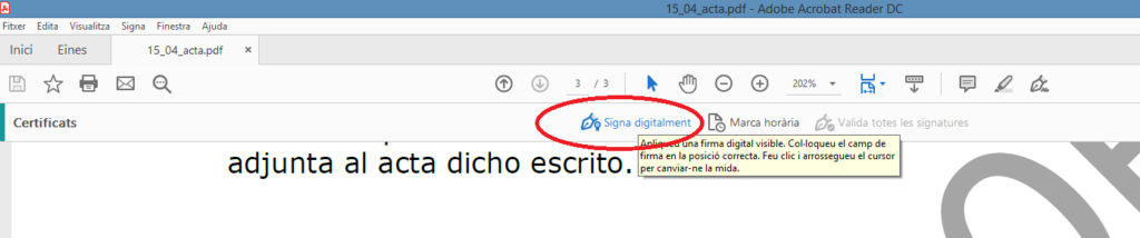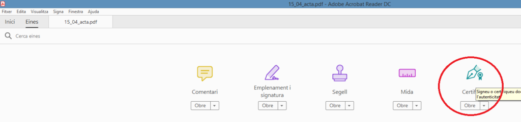 - Obrir el document que vols signar amb l’Acrobat Reader