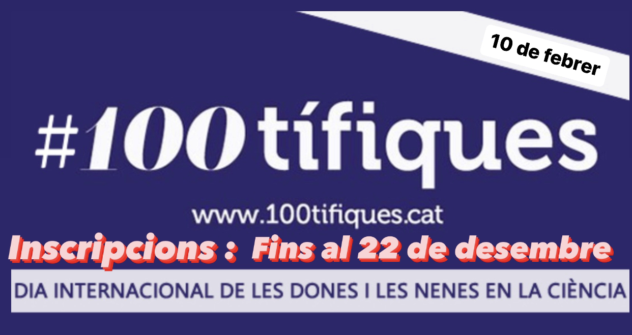 Obert el període d’inscripció de la campanya de #100tífiques que tindrà lloc divendres 10 de febrer per celebrar el Dia Internacional de les Dones i les Nenes en la Ciència. Per sol·licitar la xerrada, presencial o virtual, d’una científica, caldrà omplir la següent inscripció abans del dijous 22 de desembre.