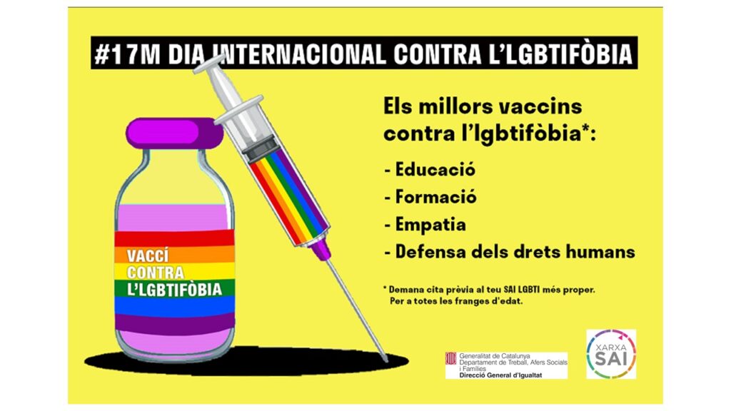 El dia 17 de maig es commemora la lluita contra l’LGBTI-fòbia. El seu objectiu és conscienciar sobre les violències i