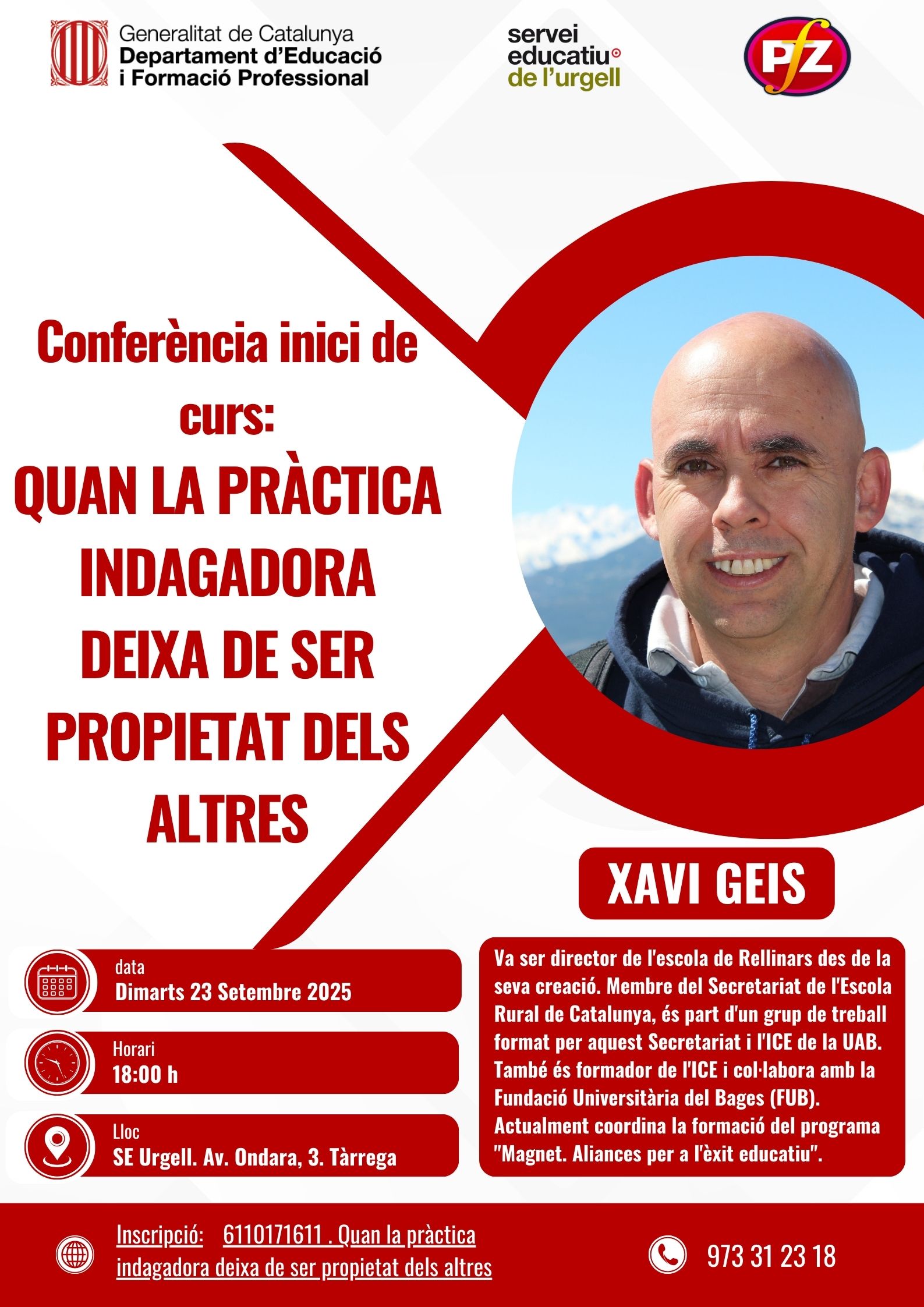Serà una oportunitat on el Xavi Geis compartirà reflexions i buscarà fomentar una educació que posi en valor el pensament crític, la participació activa i el treball col·laboratiu.
