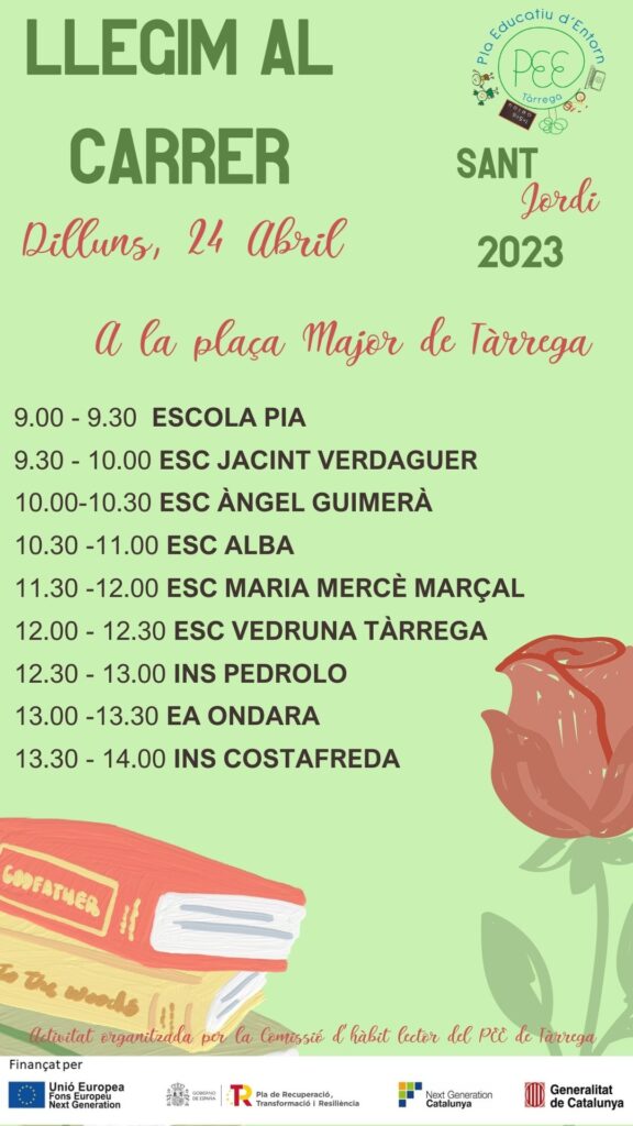 Des de la Comissió d’hàbit lector del Pla Educatiu d’entorn de Tàrrega s’organitza com cada any l’activitat de lectura en veu alta: Per Sant Jordi llegim al carrer. Cada centre educatiu de Tàrrega participarà en una lectura en veu alta: lectura lliure per als centres de primària i lectura del llibre: Mecanoscrit del segon origen […]