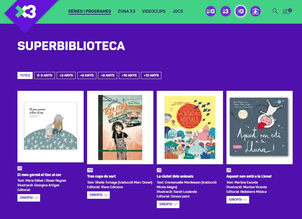 El SX3 ha posat en marxa des del passat mes d’abril la Superbiblioteca, un espai web amb propostes de llibres i consells per tal de fomentar la vocació lectora de nens i nenes. La iniciativa compta amb la col·laboració de l’Associació d’Editors en Llengua Catalana i el Consell Català del Llibre Infantil i Juvenil (Ibbycat).