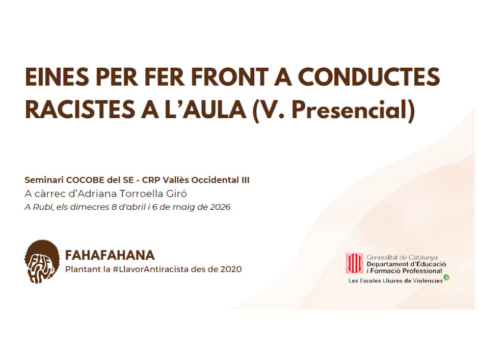 El passat dimecres 8 d’abril, dins el marc del Seminari COCOBE, vam comptar amb la presència de l’Adriana Torroella Giró. En aquesta primera sessió de la formació sobre com abordar el racisme als centres educatius, vam poder reflexionar sobre les eines i estratègies necessàries per fer front a les conductes racistes a l’aula.