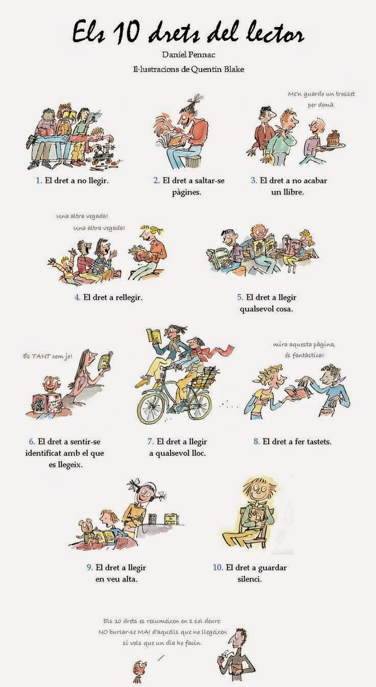 Compartim aquest pòster amb els 10 drets del lector que Daniel Pennac oferia al llibre Com una novel·la, il·lustrats per Quentin Blake.