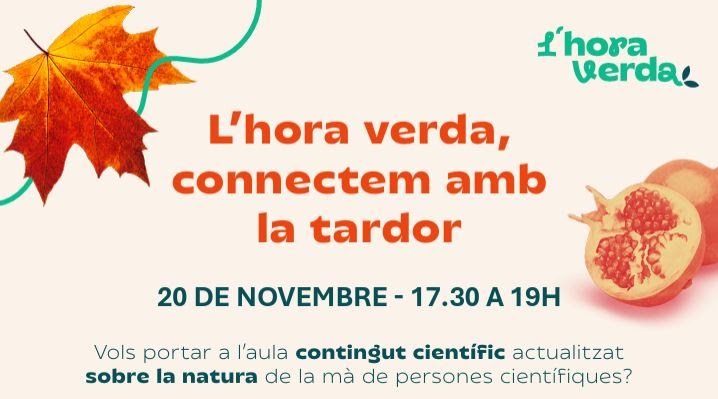 Et presentem l’Hora Verda, el nou projecte d’Escoles Verdes i el CREAF per connectar amb la natura i tenir una finestra oberta a la ciència. L’Hora Verda està adreçada a professorat de primària i de secundària. Consta de tres webinars online que es faran un cop al trimestre i tindran com a tema transversal el canvi climàtic i biodiversitat. El primer serà sobre la ciència de la tardor, i els següents exploraran l’hivern i el bon temps (la primavera i l’estiu). Cada trobada comptarà amb micro-xerrades en directe de persones científiques de diferents centres de recerca de Catalunya que ens explicaran aspectes nous, curiosos, rellevants sobre cada estació de l’any. També farem un debat, resoldrem dubtes i posarem a prova el que hem