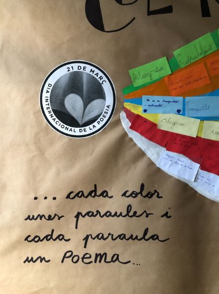Després, el dia 21, vam realitzar un mural conjunt on es van aplegar totes les nostres paraules, donant forma a una obra col·lectiva plena de color i expressió. Va ser una activitat enriquidora, on vam poder veure que la poesia anava més enllà del rodolí i que també es podia trobar en les coses més senzilles que ens envolten.