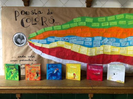 Al llarg de la setmana, durant l’estona de lectura, a través dels àlbums escrits per Marta Ardite i il·lustrats per Mariona Cabassa, vam treballar les emocions i sensacions que ens despertava cada color a través de les comparacions. Cada grup classe va treballar un color i, en petits papers del mateix color, vam escriure les nostres petites poesies; de vegades llargues, d’altres, poemes d’una sola paraula. Primer, vam cercar imatges que associàvem a cada color: moments del dia, animals, sentiments, persones… I després vam confegir els nostres escrits.