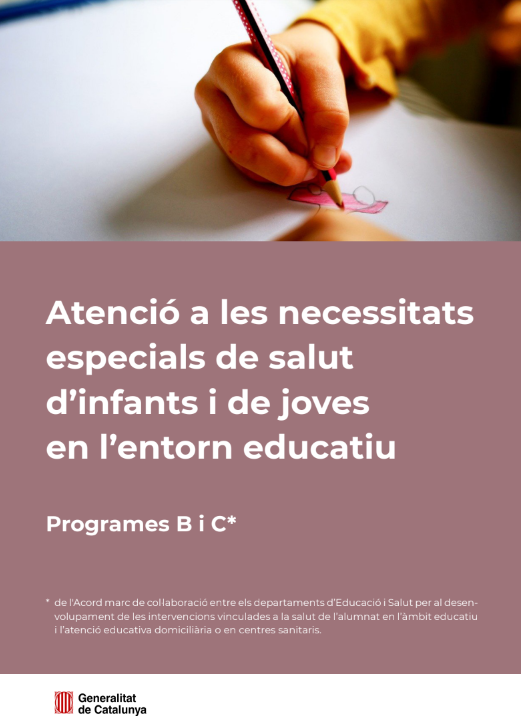 En funcionament dos protocols, que dins l’Acord Marc d’atenció a l’alumnat amb necessitats especials de salut als centres educatius ordinaris i als centres d’educació especial (PASCE B i C), tenen l’objectiu de garantir l’atenció a la salut dels infants o joves amb necessitats de cures en horari escolar derivades de malalties cròniques: