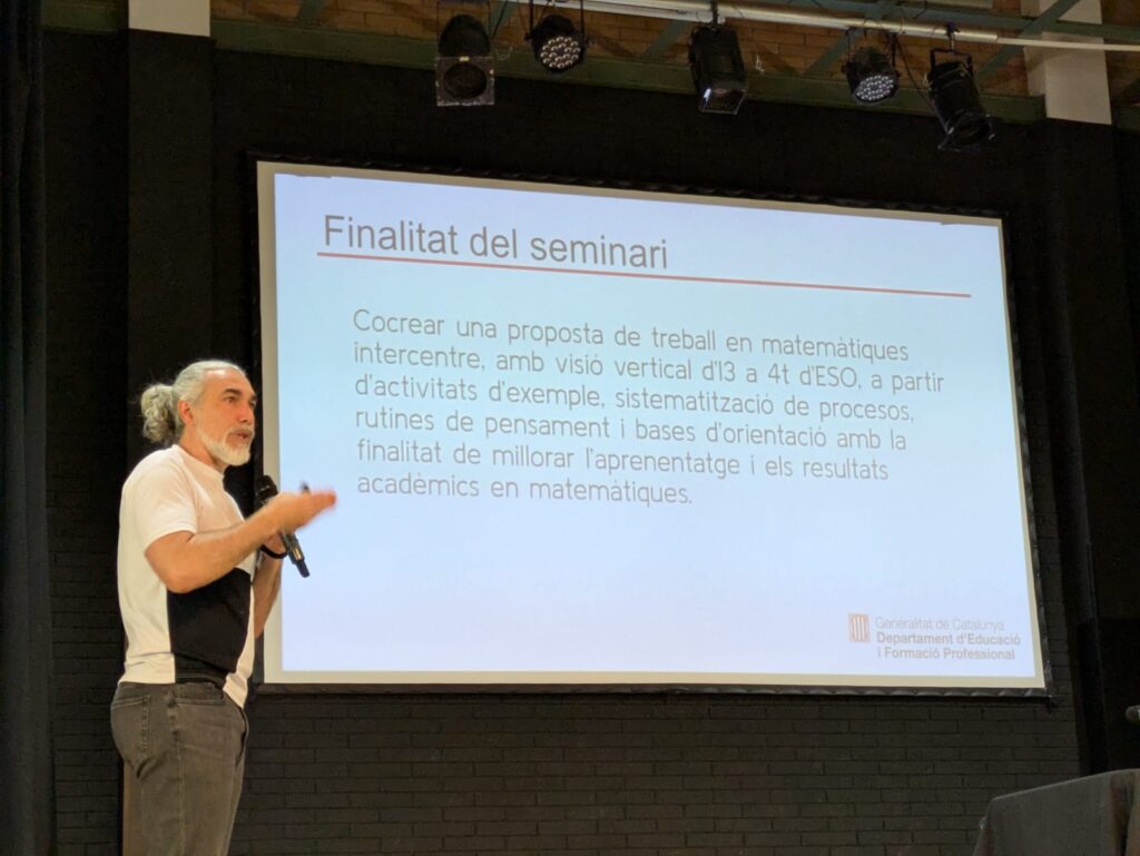 La jornada va comptar amb la ponència de Joan Carles Tinoco, qui va presentar una experiència pràctica de treball coordinat entre els nivells de primària i secundària. Aquesta proposta ens va semblar especialment inspiradora, ja que posa l’accent en la coherència pedagògica i en com un acompanyament ben traçat pot transformar l’aprenentatge de l’alumnat en el canvi d’etapa.