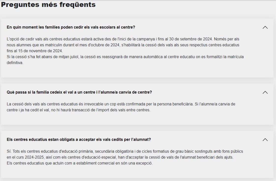 Informació per a la gestió dels vals escolars (curs 2024-25)Per admin / 27/05/2024 / Seminari Secretaria / SEM SEC 24-25, vals escolars Pàgina de suport (famílies, establiments i centres) per a la gestió dels valors escolars.