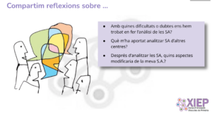 A la quarta sessió de la XIEP hem analitzat situacions d’aprenentatge de companys i companyes de la xarxa per poder reflexionar (a partir d’una base d’orientació) sobre els elements a tenir en compte en el disseny d’un procés d’aprenentatge.