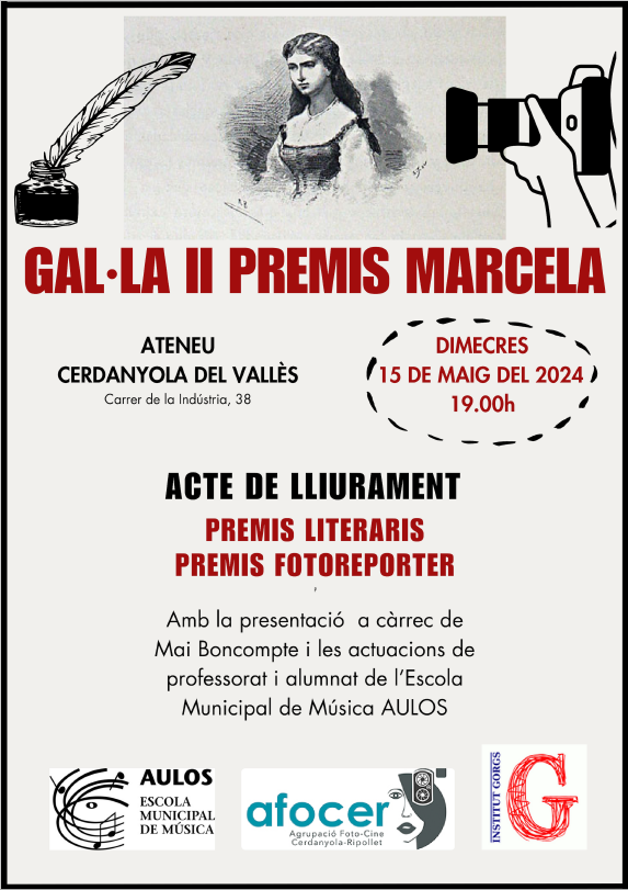 Us informem que el proper dimecres 15 de maig a les 19h es celebrarà a l’Ateneu de Cerdanyola, l’edició dels II Premis Marcela de l’Institut Gorgs de Cerdanyola del Vallès.